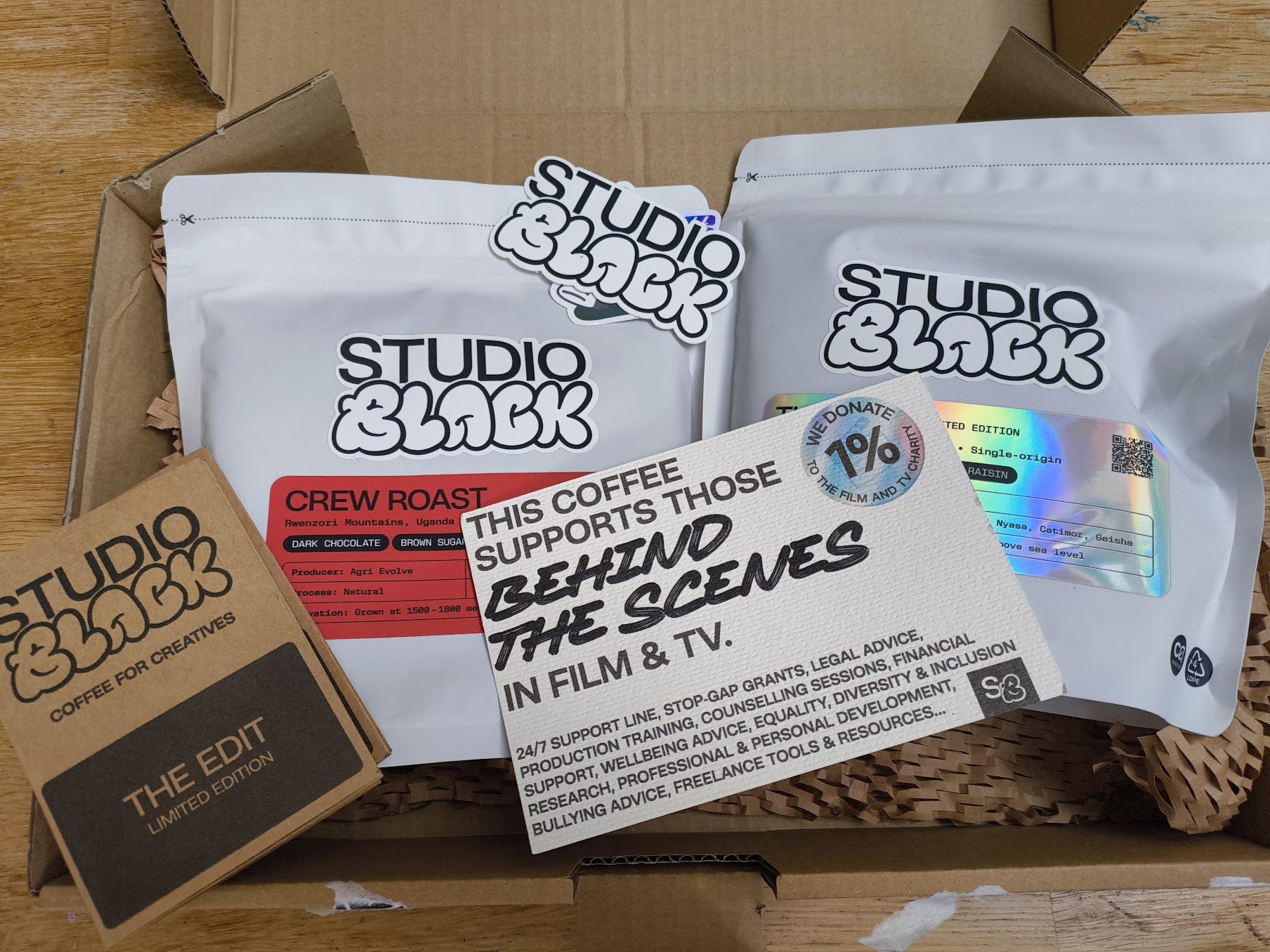 At home, but lovely coffees from new roaster, Studio Black, 1% of which goes to support the Film & TV Charity. Support a small business, and fellow freelancers at