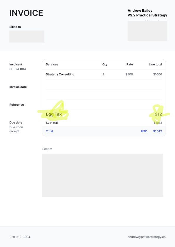 Andrew Bailey is charging extra so he can buy eggs. And obviously this from MSCHF and The Ordinary.